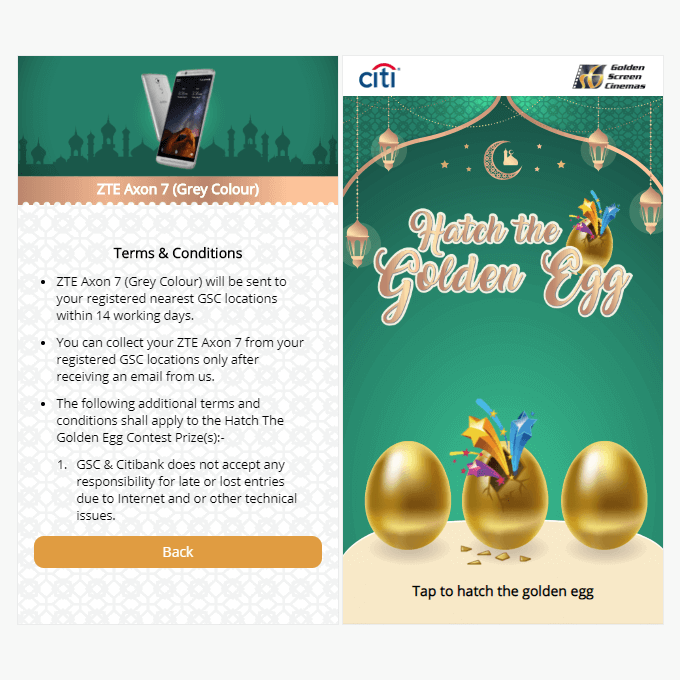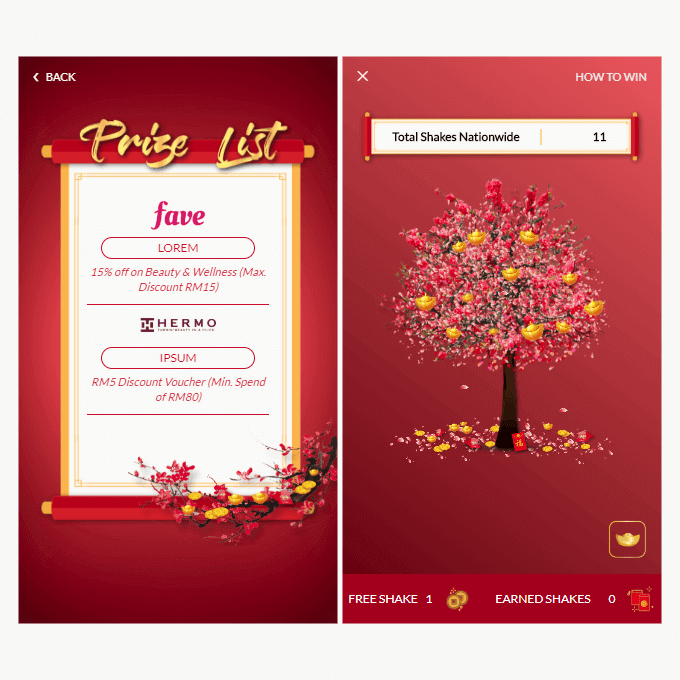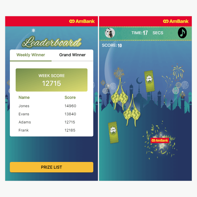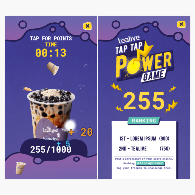 Tap game with score result, result attendance, winner announcement, and prize redemption